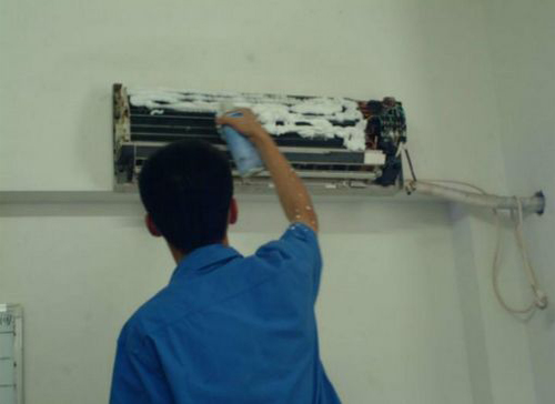 | 新津空调维修师傅给新津用户上门维修清洗空调。 |
